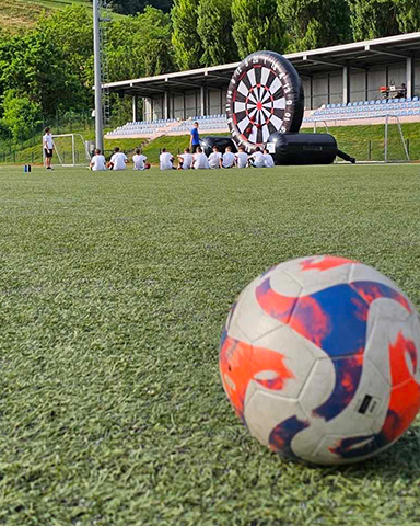 Nogometni pikado je noro zabavna aktivnostt na kampu! Otroci merijo proti velikanskemu napihljivemu tarči, podobni pikadu, vendar namesto puščic uporabljajo nogometne žoge. Cilj je zadeti čim višjo točko – a vse z močjo in natančnostjo noge!